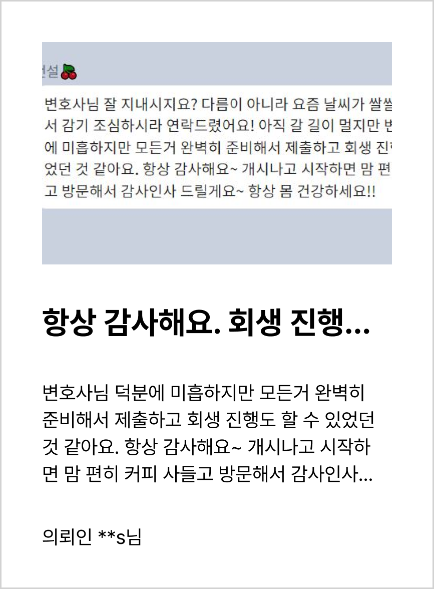 되어줄 수 있는 법무법인이 되도록 노력하겠습니다.